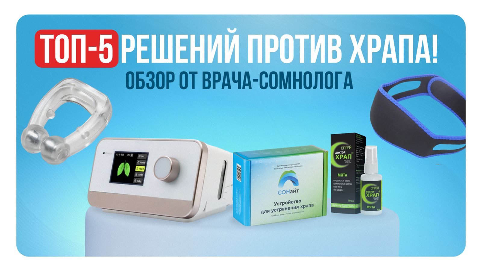 Популярный врач-сомнолог Смирнов Илья Дмитриевич сделал обзор различных решений от храпа.
